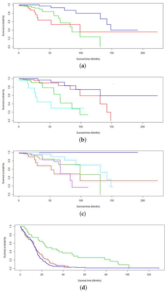 - Kaplan, E.L.; Meier, P. Nonparametric estimation from incomplete observations. J. Am. Stat. Assoc. 1958, 53, 457–481. [Google Scholar] [CrossRef]