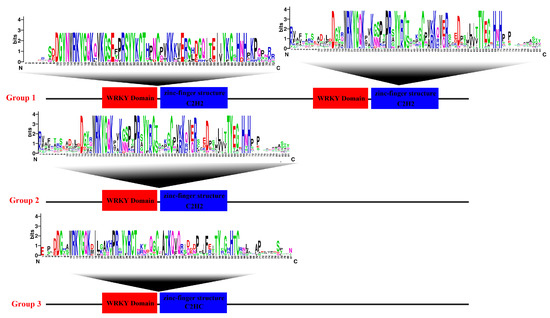 Conserved WRKY and zinc finger domain composition. Alignment analysis of WRKY TFs sequences using the ClustalW tool. These domain diagrams were plotted using the online WebLogo tool.