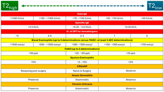 | Endotype | Allergic Biomarkers | Eosinophilic Biomarkers | |