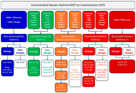 - Bourdin, A.; Brusselle, G.; Couillard, S.; Fajt, M.L.; Heaney, L.G.; Israel, E.; McDowell, P.J.; Menzies-Gow, A.; Martin, N.; Mitchell, P.D.; et al. Phenotyping of Severe Asthma in the Era of Broad-Acting Anti-Asthma Biologics. J. Allergy Clin. Immunol. Pract. 2024, 12, 809–823. [Google Scholar] [CrossRef]