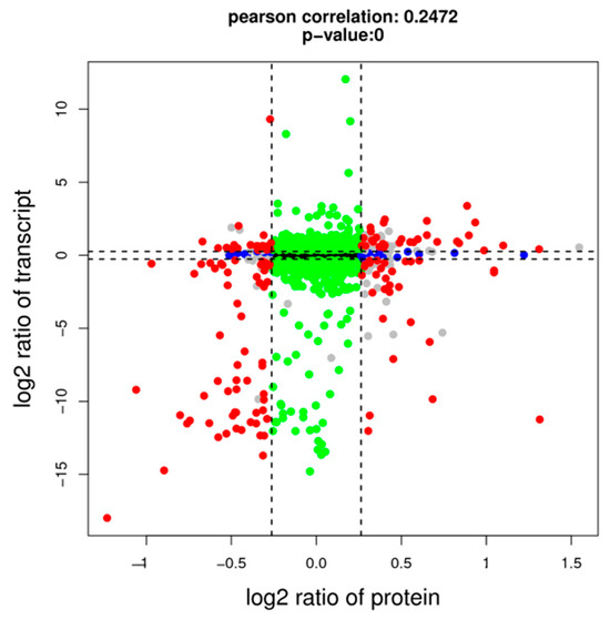 2.3. Correlation Analysis of DEGs and DEPs