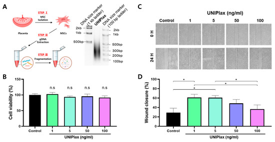 2.1. Human PDRN (UNIPlax) Derived from PD-MSCs Affects Cell Migration