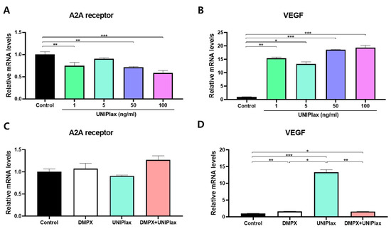2.3. UNIPlax Increases the Expression of VEGF Through the A2A Receptor