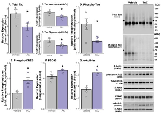 - Marcatti, M.; Tumurbaatar, B.; Borghi, M.; Guptarak, J.; Zhang, W.-R.; Krishnan, B.; Kayed, R.; Fracassi, A.; Taglialatela, G. Inhibition of Calcineurin with FK506 Reduces Tau Levels and Attenuates Synaptic Impairment Driven by Tau Oligomers in the Hippocampus of Male Mouse Models. Int. J. Mol. Sci. 2024, 25, 9092. [Google Scholar] [CrossRef] [PubMed]