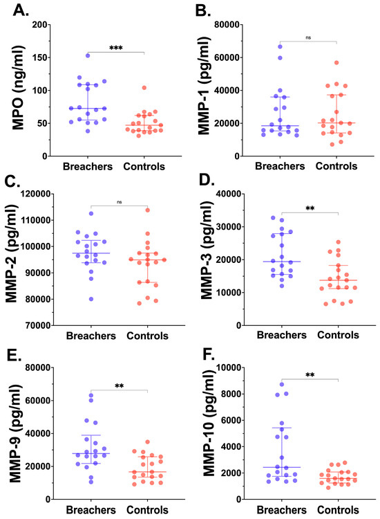 2.4. Circulating Myeloperoxidase and Matrix Metalloproteinases in Breachers and Controls