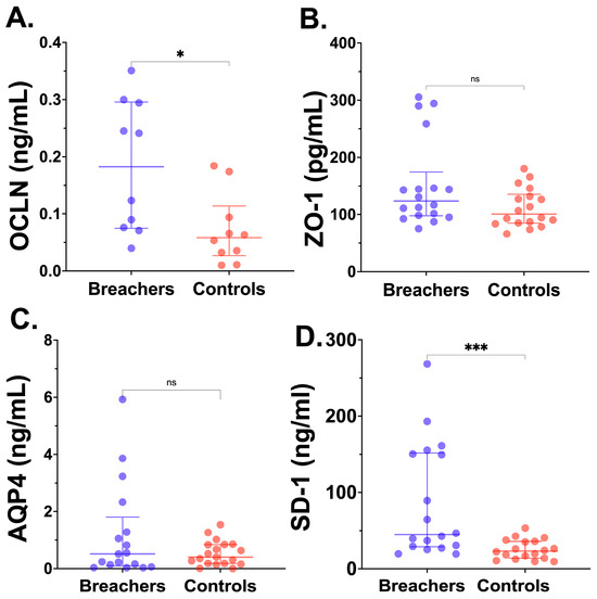 2.5. Circulating Neurovascular Injury Molecules in Breachers and Controls