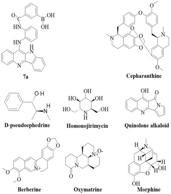 - Abookleesh, F.L.; Al-Anzi, B.S.; Ullah, A. Potential Antiviral Action of Alkaloids. Molecules 2022, 27, 903. [Google Scholar] [CrossRef]
