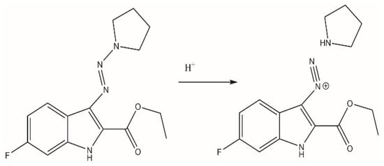 - Majorov, K.B.; Nikonenko, B.V.; Ivanov, P.Y.; Telegina, L.N.; Apt, A.S.; Velezheva, V.S. Structural Modifications of 3-Triazeneindoles and Their Increased Activity Against Mycobacterium Tuberculosis. Antibiotics 2020, 9, 356. [Google Scholar] [CrossRef]