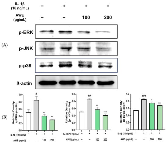 2.4. Effect of AWE on the Activation of MAPKs and NF-κB in IL-1β-Induced SW1353 Cell