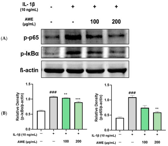 2.3. Effect of AWE on the Activation of Inflammation in IL-1β-Induced SW1353 Cell