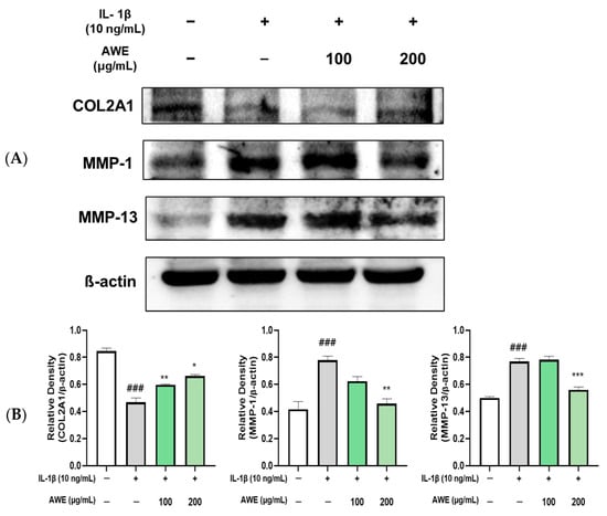 2.5. Effect of AWE on the Activation of Collagen II and MMPs in IL-1β-Induced SW1353 Cell