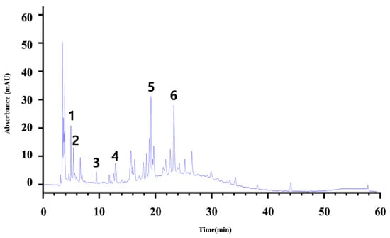 2.6. Ultra Performance Liquid Chromatography–Quadrupole Time-of-Flight Mass Spectrometry (UPLC-TOF-MS/MS) Detection of AWE