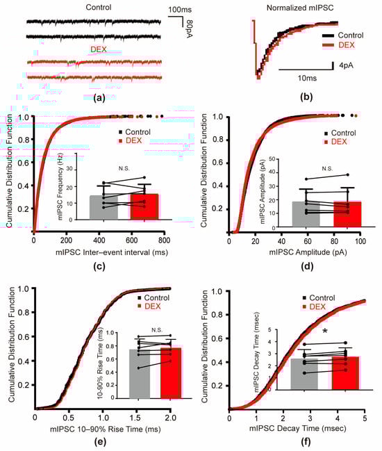 2.2. DEX Prolonged the Decay Time of mIPSCs