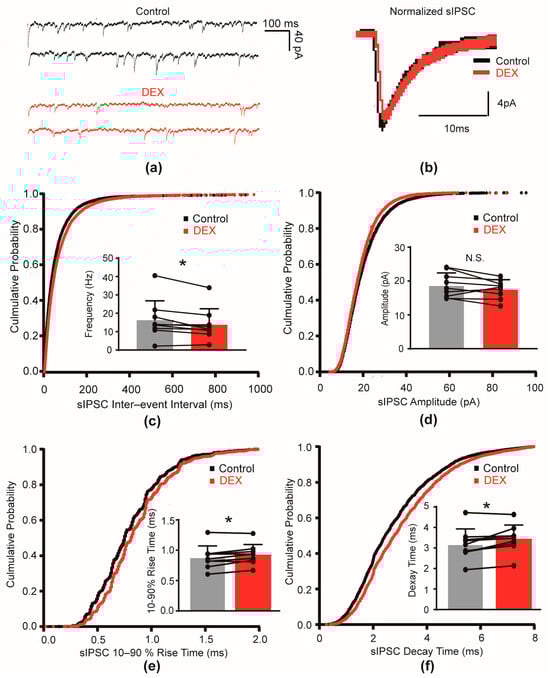 2.1. DEX Decreased the Frequency and Slowed the Kinetics of sIPSCs