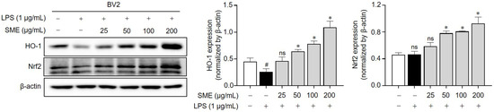 2.5. SME Activates the Expression of Nrf2 and HO-1 in LPS-Stimulated Microglial Cells