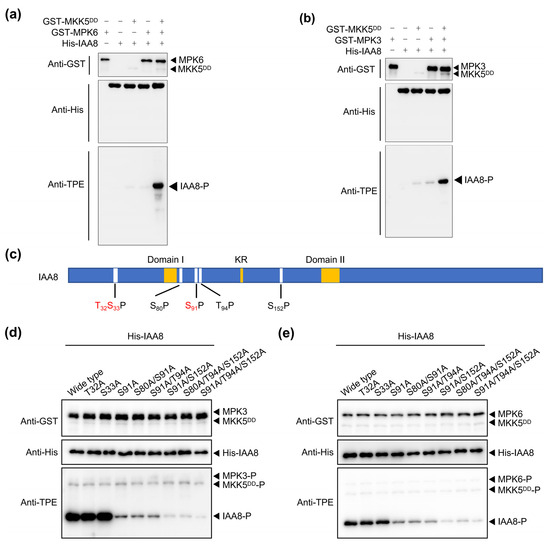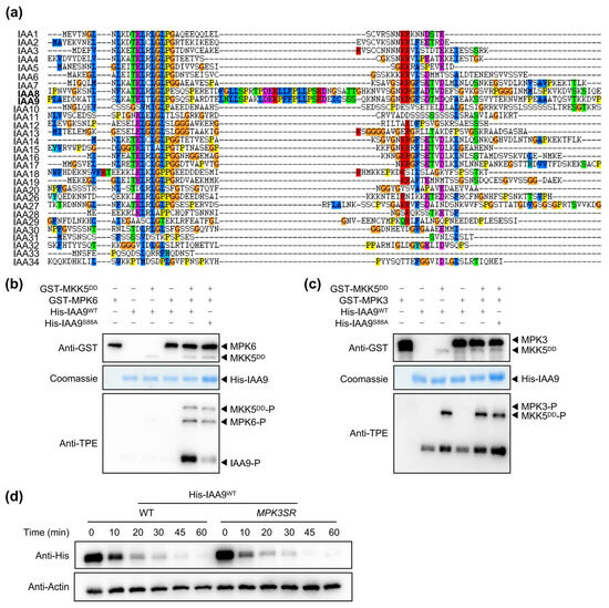 2.3. MPK3/6 Phosphorylate IAA8 at S91, T94, and S152 Residues