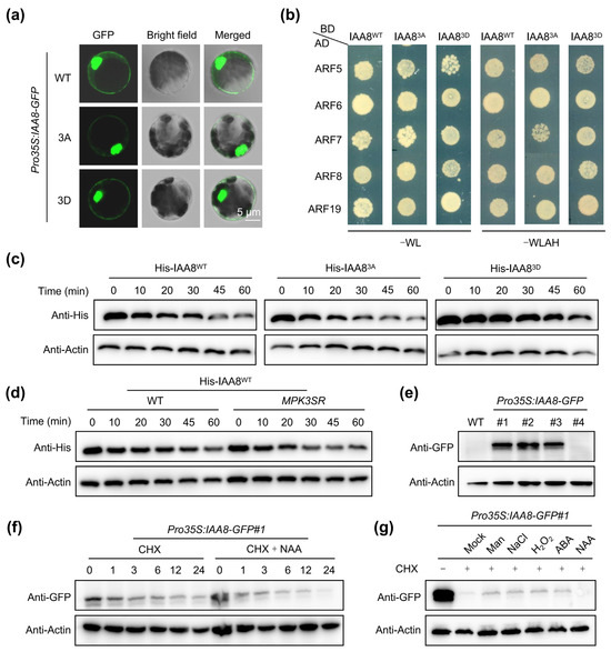 2.4. MPK3/6-Mediated Phosphorylation Stabilizes IAA8