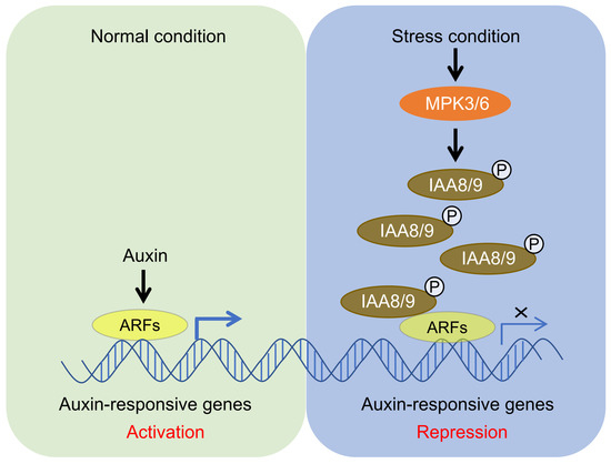 Chicago/Turabian StyleWang, Chunyan, Xiaoxuan Li, Han Zhao, Xiankui Cui, Wenhong Xu, Ke Li, Yang Xu, Zipeng Yu, Luyao Yu, and Rui Guo. 2025. "Mitogen-Activated Protein Kinases 3/6 Reduce Auxin Signaling via Stabilizing Indoleacetic Acid-Induced Proteins 8/9 in Plant Abiotic Stress Adaptation" International Journal of Molecular Sciences 26, no. 5: 1964. https://doi.org/10.3390/ijms26051964
