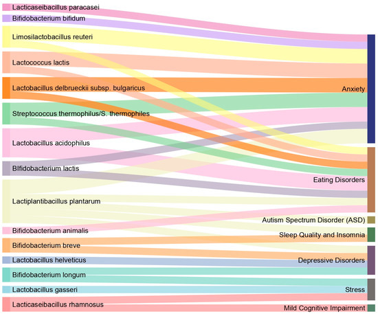 The therapeutic potential of psychobiotics ranges from mild conditions such as anxiety and stress to severe disorders such as depression and autism [8]. The psychophysiological effects produced by these bacteria mainly comprise the following: psychological effects on emotional and cognitive processes; systemic effects on the HPA axis and on the response to stress and inflammation; neural effects on neurotransmitters and proteins [12].