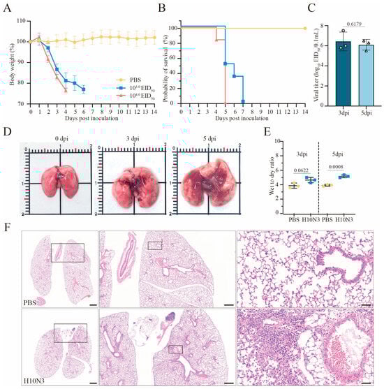 2.1. H10N3 Infection Causes Mouse Mortality and Severe Pulmonary Damage