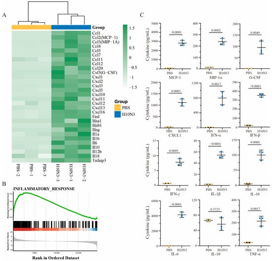 2.2. H10N3 Infection Induces Significant Cytokine Storm