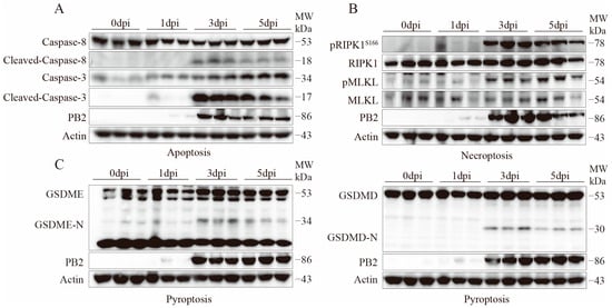 - Chen, X.; Zhang, W.; Yi, W.; Yang, L.; Bi, X.; Lin, Y.; Deng, W.; Dong, J.; Li, M.; Xie, Y. Pathway of Cell Death and Its Role in Virus Infection. Viral Immunol. 2022, 35, 444–456. [Google Scholar] [CrossRef] [PubMed]