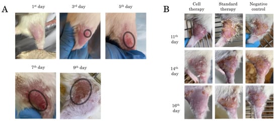 - Skin samples of animals with radiation-induced skin wounds at the time of wet epidermitis development;