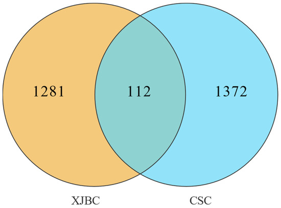 Venn diagram of candidate genes for Xinjiang brown cattle and Chinese Simmental cattle.