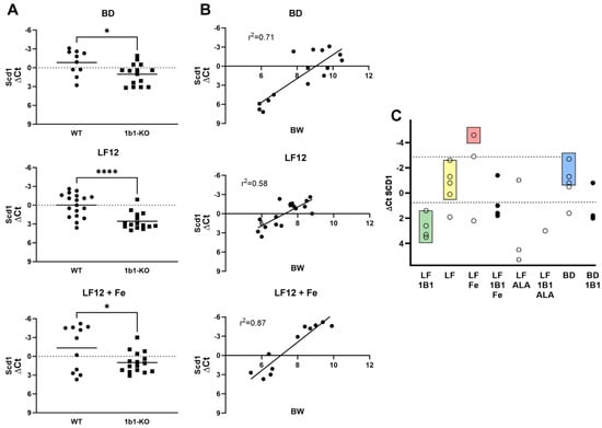2.6. Use of Scd1 and Other Srebp Activity Markers to Compare BD and LF12 Diets