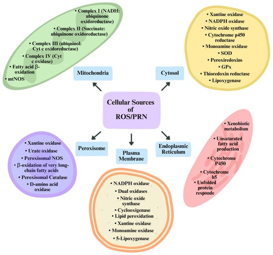 2.3. Endogenous Sources of Reactive Oxygen and Nitrogen Species (ROS/RNS)