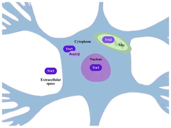 - Silva-Adaya, D.; Gonsebatt, M.E.; Guevara, J. Thioredoxin System Regulation in the Central Nervous System: Experimental Models and Clinical Evidence. Oxid. Med. Cell. Longev. 2014, 2014, 590808. [Google Scholar] [CrossRef] [PubMed]