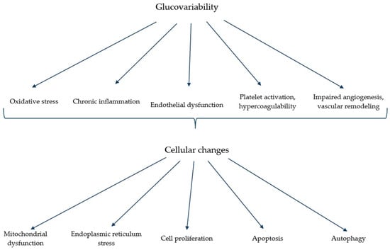 Glucovariability biochemical, pathophysiological, and cellular changes.