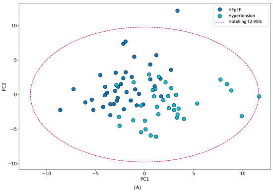 In our study, we compared patients with similar risk factors for HFpEF, such as age, obesity, dyslipidemia, hypertension, atrial fibrillation (AF), type 2 diabetes mellitus (DM), and chronic kidney disease. Since the cardiac myocardium is an energy-consuming organ, it is sensitive to metabolic changes. Metabolic maladaptation and metabolic disorders such as those caused by type 2 DM, obesity, and AF play an important role in CVD development. Thus, we decided to study changes in the metabolomic profile of HFpEF patients.