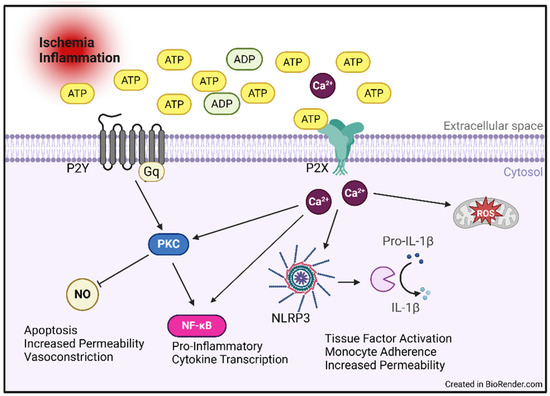 - Bodin, P.; Burnstock, G. Increased Release of ATP from Endothelial Cells during Acute Inflammation. Inflamm. Res. 1998, 47, 351–354. [Google Scholar] [CrossRef] [PubMed]