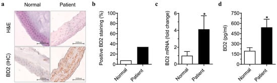 - Harder, J.; Dressel, S.; Wittersheim, M.; Cordes, J.; Meyer-Hoffert, U.; Mrowietz, U.; Fölster-Holst, R.; Proksch, E.; Schröder, J.M.; Schwarz, T.; et al. Enhanced expression and secretion of antimicrobial peptides in atopic dermatitis and after superficial skin injury. J. Investig. Dermatol. 2010, 130, 1355–1364. [Google Scholar] [CrossRef]