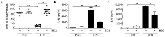 2.4. The Effect of Beta-Defensin 2 in an LPS-Induced Preterm Birth Mouse Model