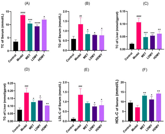 2.1. Effects of VDMY on Blood Biochemical Indicators in db/db Mice