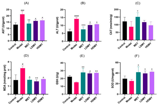 2.2. Effects of VDMY on Liver Injury and Oxidative Stress in db/db Mice