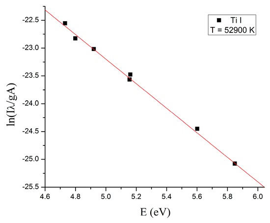 - Bousquet, B.; Gardette, V.; Ros, V.M.; Gaudiuso, R.; Dell’Aglio, M.; De Giacomo, A. Plasma excitation temperature obtained with Boltzmann plot method: Significance, precision, trueness and accuracy. Spectrochim. Acta Part B At. Spectrosc. 2023, 204, 106686. [Google Scholar] [CrossRef]