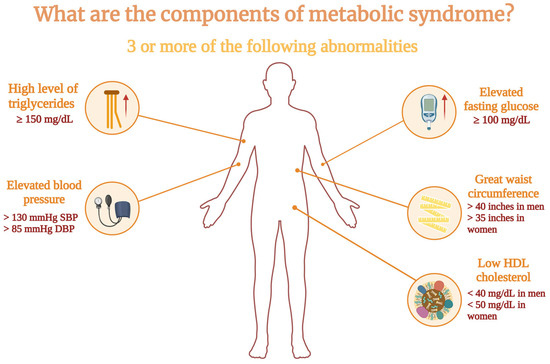 - Fahed, G.; Aoun, L.; Bou Zerdan, M.; Allam, S.; Bou Zerdan, M.; Bouferraa, Y.; Assi, H.I. Metabolic Syndrome: Updates on Pathophysiology and Management in 2021. Int. J. Mol. Sci. 2022, 23, 786. [Google Scholar] [CrossRef] [PubMed] [PubMed Central]