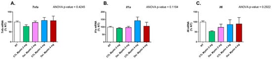 2.5. Myelin Exposure Does Not Induce a Pro-Inflammatory Profile in BV-2 Cells
