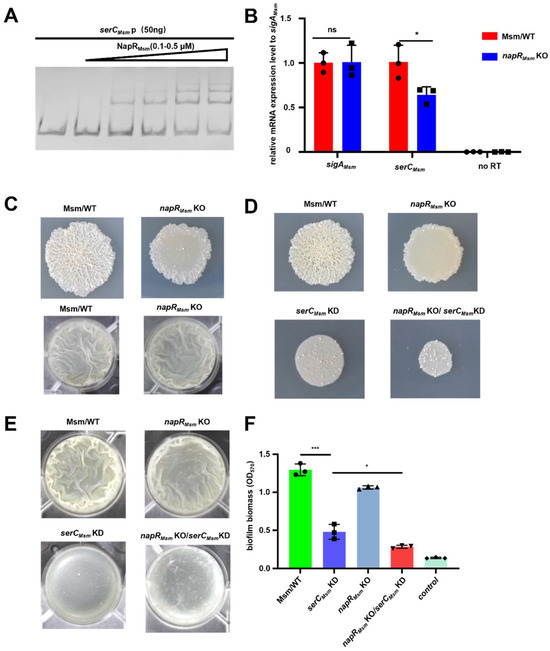 2.3. NapRMsm Activates serC to Positively Regulate Biofilm Formation in M. smegmatis