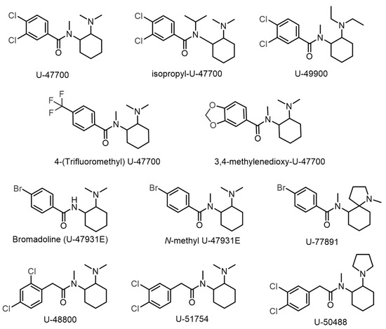 U-type opioids currently found in illicit drug markets.