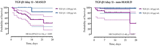 - Susak, F.; Vrsaljko, N.; Vince, A.; Papic, N. TGF Beta as a Prognostic Biomarker of COVID-19 Severity in Patients with NAFLD-A Prospective Case-Control Study. Microorganisms 2023, 11, 1571. [Google Scholar] [CrossRef]
