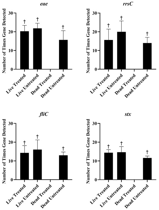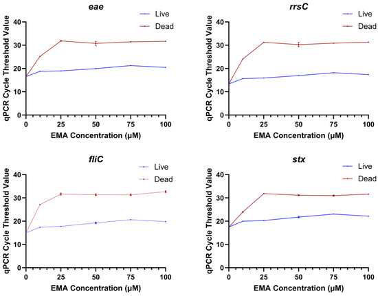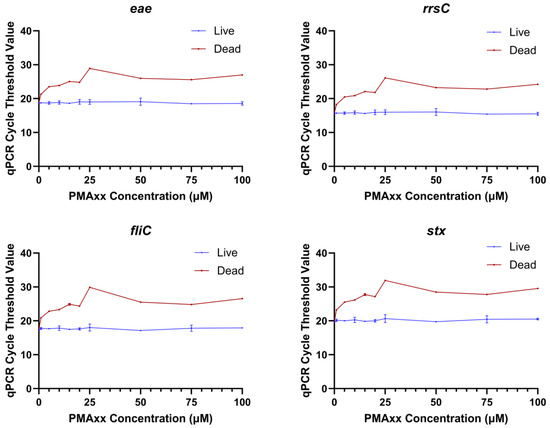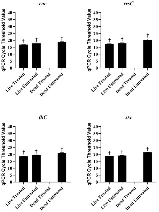 - Liu, Y.; Mustapha, A. Detection of viable Escherichia coli O157:H7 in ground beef by propidium monoazide real-time PCR. Int. J. Food Microbiol. 2014, 170, 48–54. [Google Scholar] [CrossRef]
