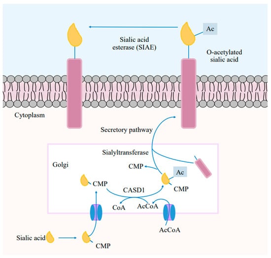 - Visser, E.A.; Moons, S.J.; Timmermans, S.B.P.E.; de Jong, H.; Boltje, T.J.; Bull, C.J. Sialic acid O-acetylation: From biosynthesis to roles in health and disease. J. Biol. Chem. 2021, 297, 100906. [Google Scholar] [CrossRef]