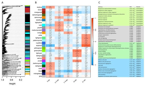 - Langfelder, P.; Horvath, S. WGCNA: An R package for weighted correlation network analysis. BMC Bioinformatics 2008, 9, 559. [Google Scholar] [CrossRef]