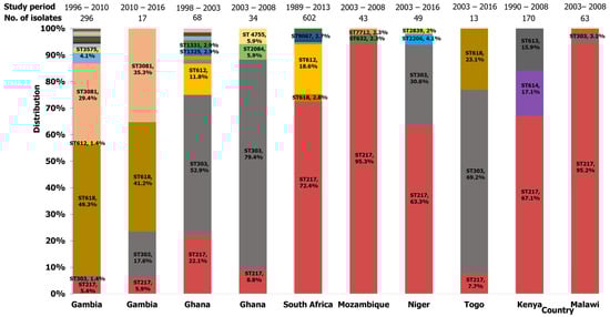 - Donkor, E.S.; Adegbola, R.A.; Wren, B.W.; Antonio, M. Population Biology of Streptococcus pneumoniae in West Africa: Multilocus Sequence Typing of Serotypes That Exhibit Different Predisposition to Invasive Disease and Carriage. PLoS ONE 2013, 8, e53925. [Google Scholar] [CrossRef]