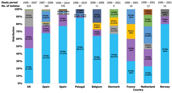 - Almeida, S.T.; de Lencastre, H.; Sá-Leão, R. Epidemiology and Population Structure of Serotypes 1, 5 and 7F Carried by Children in Portugal from 1996-2010 before Introduction of the 10-Valent and 13-Valent Pneumococcal Conjugate Vaccines. PLoS ONE 2013, 8, e75442. [Google Scholar] [CrossRef][Green Version]