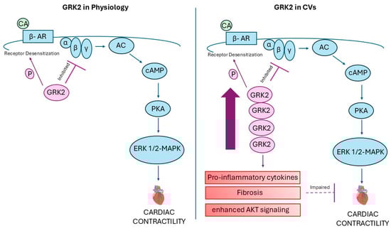 - Ferrero, K.M.; Koch, W.J. GRK2 in cardiovascular disease and its potential as a therapeutic target. J. Mol. Cell. Cardiol. 2022, 172, 14–23. [Google Scholar] [CrossRef] [PubMed]